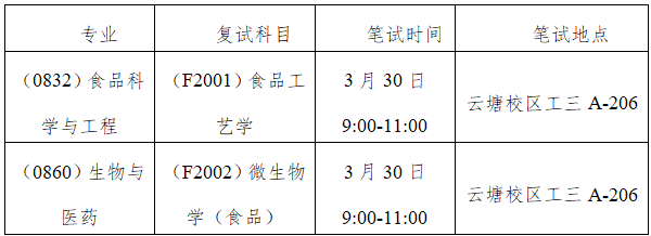 (1)专业课笔试,科目:F2001食品工艺学、F2002微生物学(食品)。采用闭卷考试,考试时长一般为2小时,满分为100分。