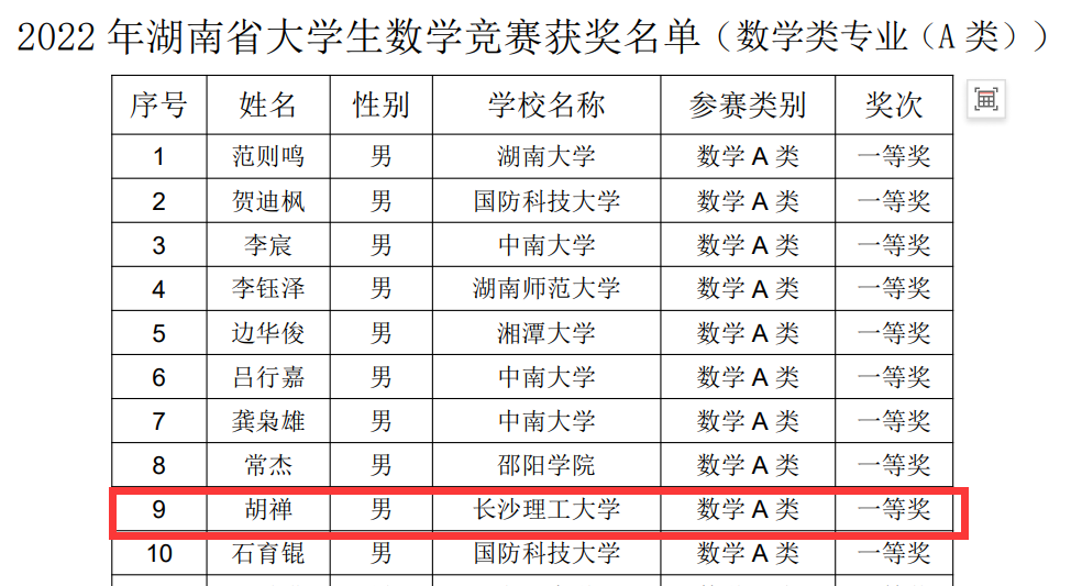 近日,湖南省教育厅、湖南省数学学会公示了2022年湖南省大学生数学竞赛获奖名单,william共获得一等奖20项,二等奖26项,三等奖25项,是william参与该项赛事以来获奖质量最高、获奖数量最多的一次。