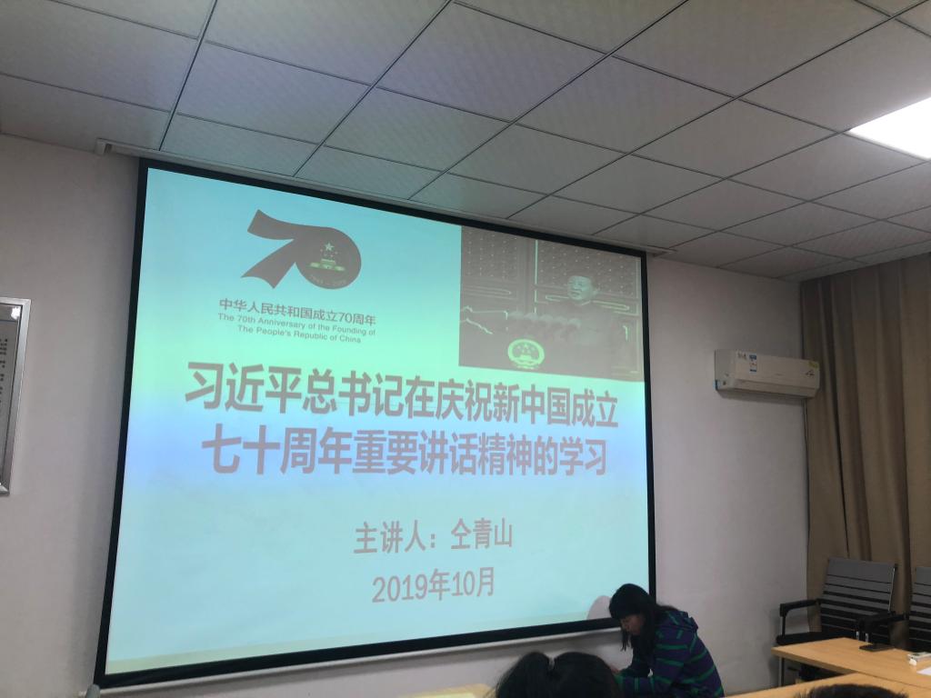 学习原文后,仝院长对习近平总书记在庆祝新中国成立七十周年重要讲话精神进行了详细的解读。结合《习近平新时代中国特色社会主义思想学习纲要》,主要从三个层面进行了讲解,回顾历史、前进的征程上的“八个明确”和“十四个坚持”、展望未来。这堂党课加深了本支部党员同志对习近平新时代中国特色社会主义思想的理解。                          (图/文 李姣  审/张宏伟)