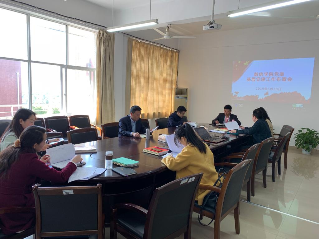 为切实做好基层党建工作,深入推进学校巡视整改意见的落实,补齐短板,根据学校关于开展基层党建“四项”检查工作的通知,3月30日(周六)上午10点,在理科楼A410召开了基层党建工作布置会,学院党委书记、副书记、党政办主任、党务主任干事、师生党支部书记参加了会议,会议由党委书记张宏伟主持。