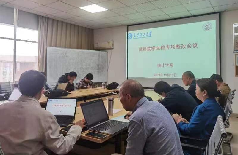 然后根据审核评估的要求,统计学系召开了课程教学文档专项整改会议,基于前阶段提交的教学文档中出现的主要问题,以点带面,布置下一阶段教学文档整改的要求与任务。
