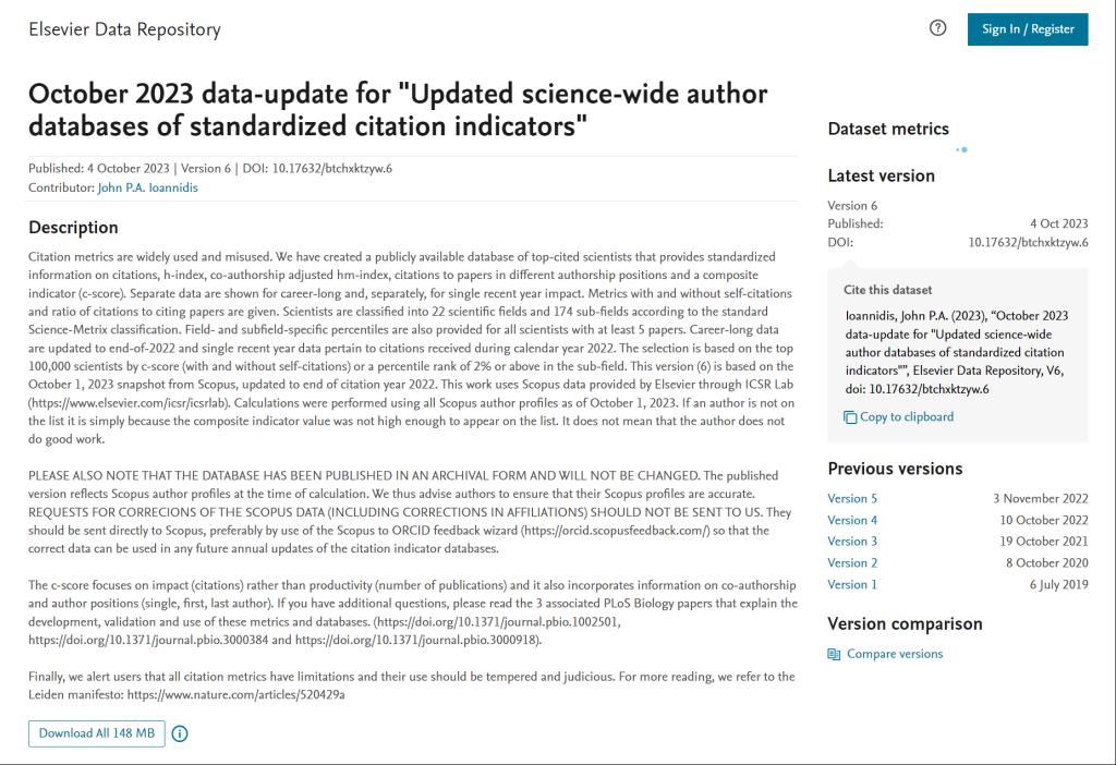 该榜单基于Scopus数据库,使用总引用量、h因子、hm因子、单独作者、单独或者第一作者、单独、第一或者最后作者文章引用量六种关键因素的指标进行打分,从近700万科技工作者中,筛选出世界排名顶尖2%的科学家,涵盖文、理、工学科,涉及22个领域和174个子学科,旨在提供一个科学家长期科研表现的衡量指标,更客观、更真实地反映科学家的影响力。