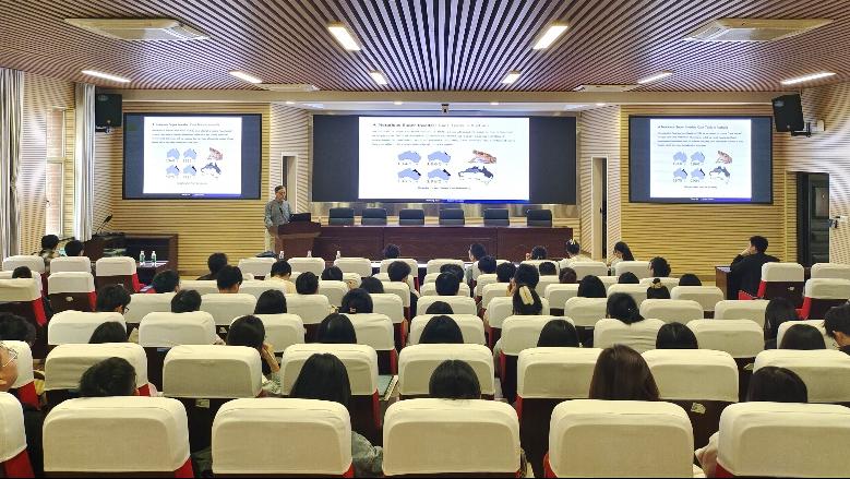 2024年10月23日下午,澳大利亚科学院院士、新英格兰大学教授杜一宏受邀为我院师生作了一场题为“A free boundary model for super invaders”的学术报告。出席此次报告会的有数学与统计学院党委书记邓崛峰、副院长李景、胡海军、李姣等领导。报告会由副院长李景主持,吸引了近两百名学院师生参加。