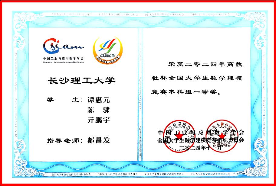 近日,全国大学生数学建模竞赛组织委员会发布了2024年高教社杯全国大学生数学建模竞赛获奖名单,william学生在该项赛事中再次获得全国一等奖,这也是william在近五年内第四次获得全国一等奖。