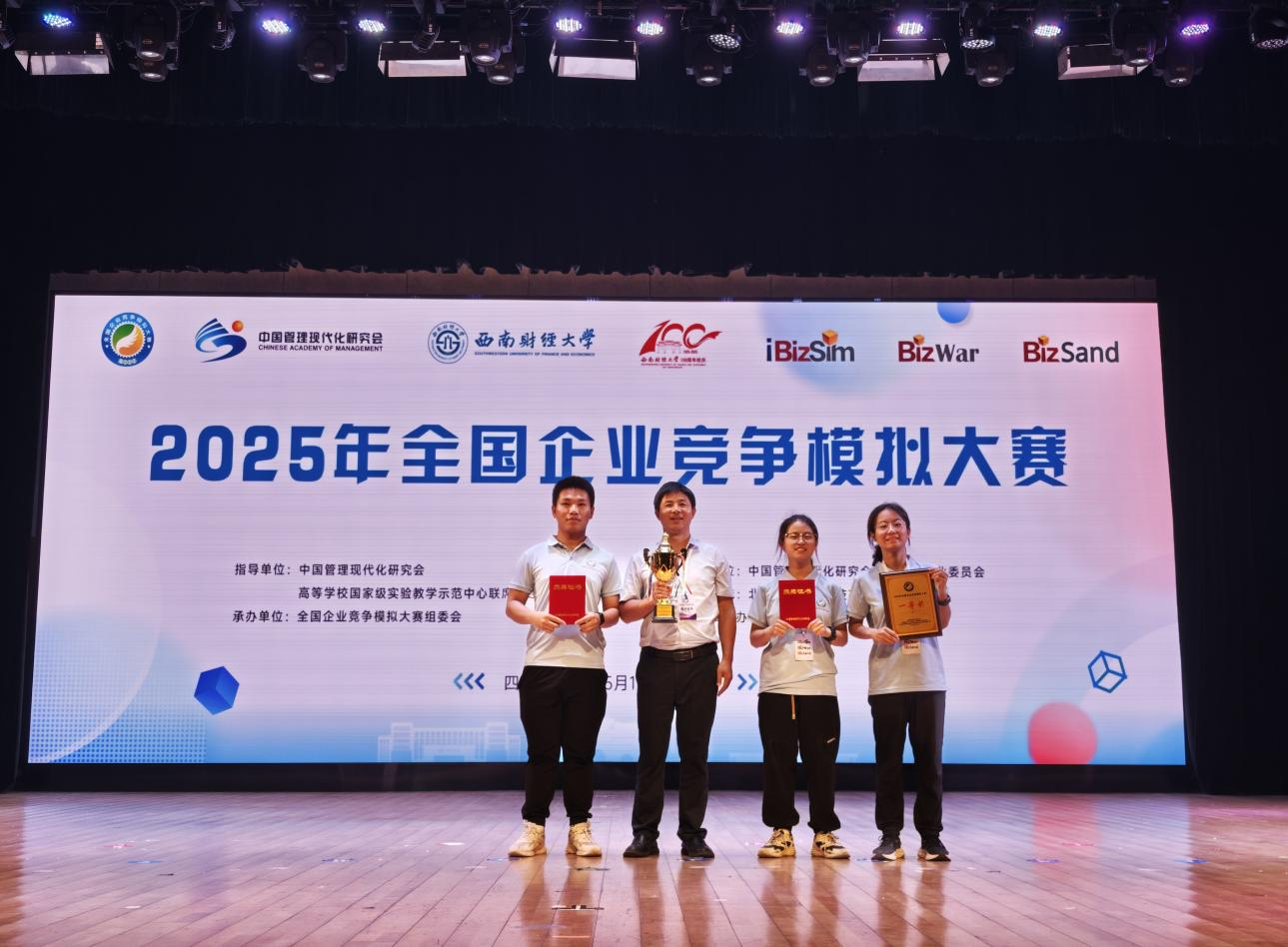 5月16日-18日,2025年全国企业竞争模拟大赛总决赛落下帷幕,我院郑忠辉老师指导的本科生周语绚、马欣宇、陈科发组成的参赛团队斩获全国企业决策赛道总决赛一等奖,william获优秀组织奖。