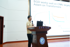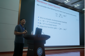 在学术交流环节,中国运筹学会副理事长、北京大学北京国际数学研究中心文再文教授,香港中文大学(深圳)数据科学学院孙若愚教授,中南大学自动化学院伍国华教授,国防科技大学胡胜龙教授等分别就基于学习的数学优化算法与理论,理解和改进大模型训练的最新进展,组合优化问题通用建模和智能优化算法设计方法、非线性最小二乘问题算法的收敛性分析等前沿学术主题作了大会报告。