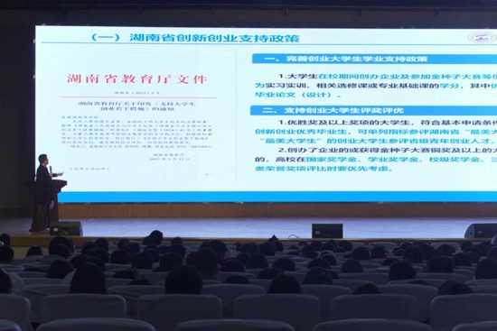 12月3日晚,我院在金盆岭校区五教大礼堂召开创新创业政策宣讲会。本次会议由就业专干彭峥主持,学院党委副书记兼副院长郑忠辉出席,2025级全体本科生参加。