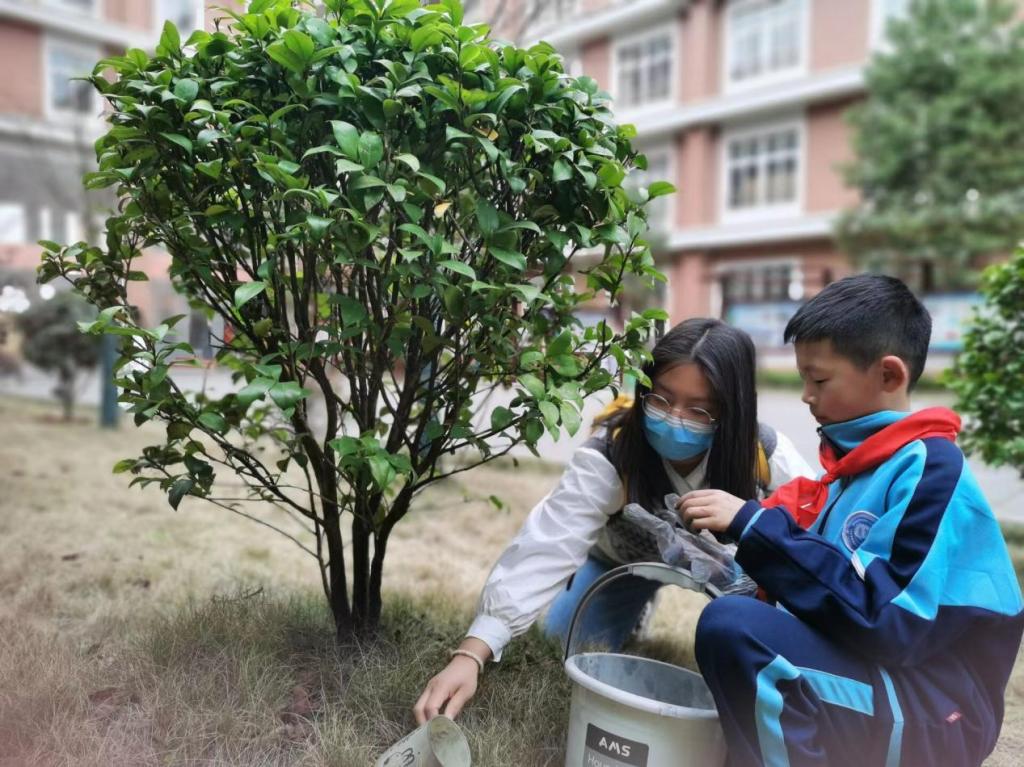 在校园“护绿”环节中,志愿者们手把手悉心指导小朋友们为校园内所有园林植物施肥浇水,体验劳动最快乐,劳动最光荣。小朋友们或手提水桶,或手拿铁锹,纷纷身体力行,争当“护绿使者”。19011班王谦睿小朋友说:“很谢谢大哥哥大姐姐陪我们来给植物浇水施肥,我们一定会爱护环境,以后也会努力帮助别人”。志愿者曾可欣表示很开心在这么有意义的一天,陪伴小朋友加强劳动,累并快乐着。