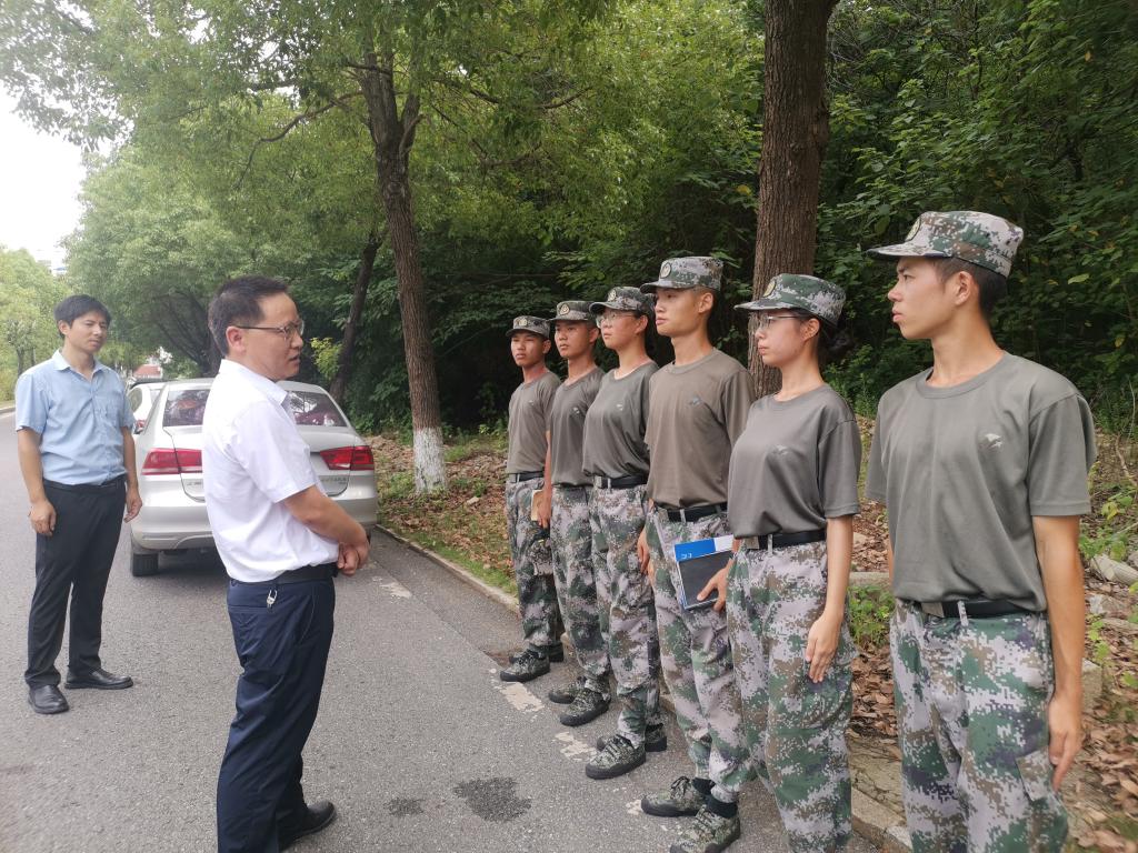 2023年7月4日上午,数统学院党委书记邓崛峰,党委副书记郑忠辉、学工办老师崔培东来到了民兵连训练场地,亲切慰问了正在训练的数统学院六名民兵连学员。