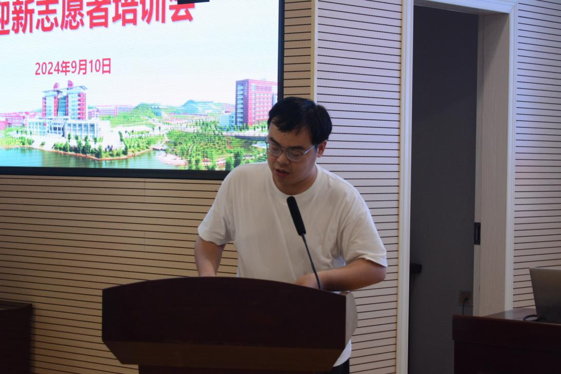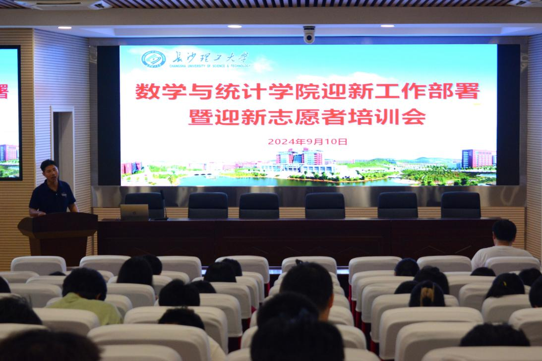 为迎接新学期的开始,确保新生能够顺利地融入大学生活,数学与统计学院于2024年9月10日在理科楼A200举办迎新志愿者培训大会,党委副书记郑忠辉、学工办老师张潇腾出席,全体团委、学生会成员、下班党干和迎新志愿者共同参加。
