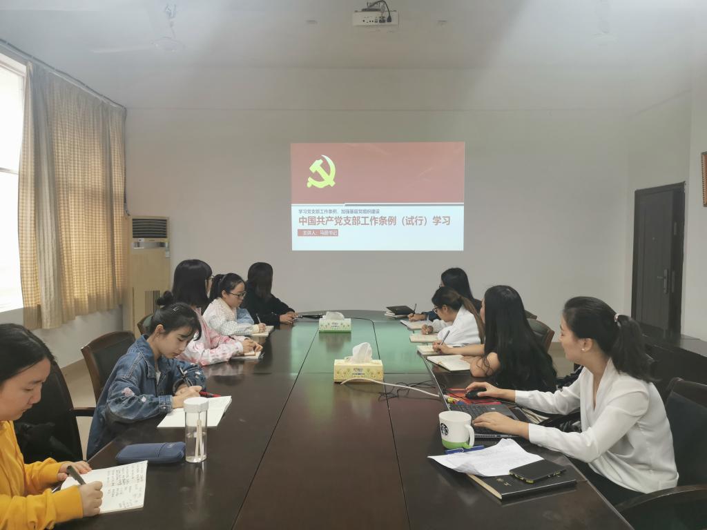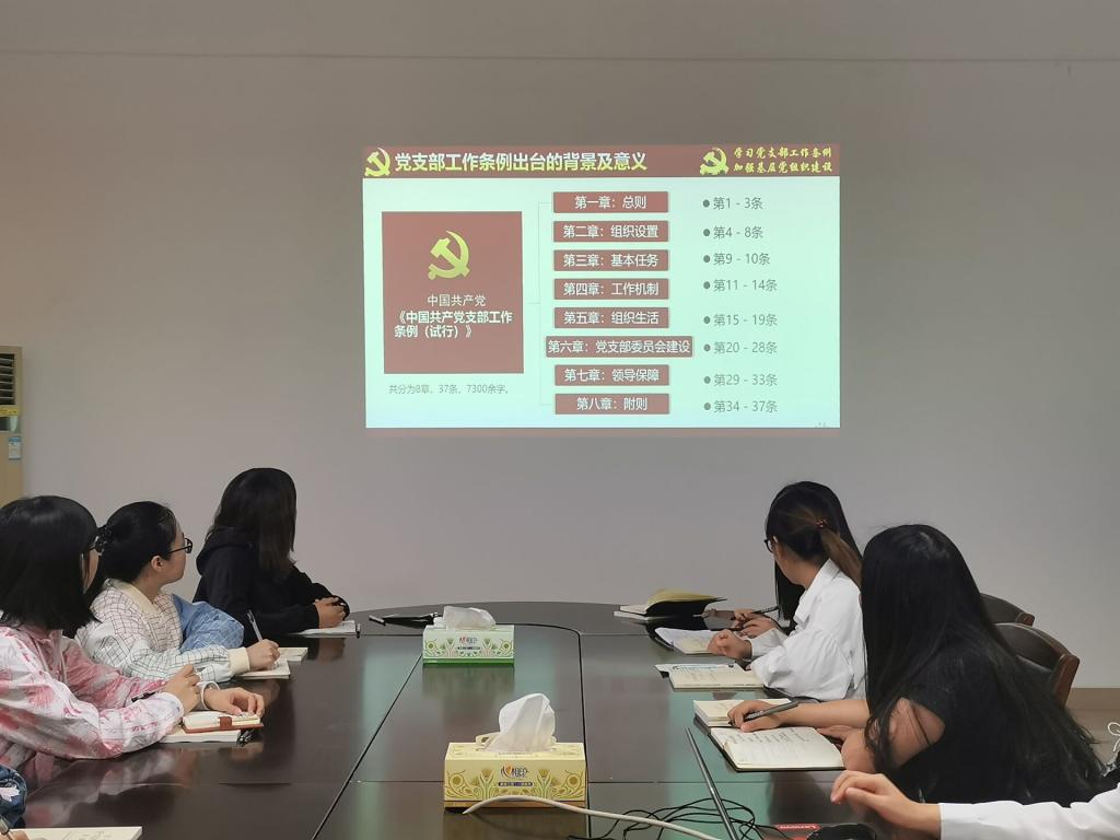 马丽分别从党支部工作条例出台的背景及意义、党支部工作条例全文逐章重点解读和党支部工作条例实施贯彻实践要求三个方面,紧密结合党支部的建设,倡导我们将《条例》各项规定落到实处。首先,她指出要把党支部建成坚强战斗堡垒,要把抓好党支部作为组织体系建设的基本内容,巩固传统领域党支部建设,推动党支部担负好直接教育党员、管理党员、监督党员和组织群众、宣传群众、凝聚群众、服务群众的职责。接着,她从《条例》的总则、组织设置、基本任务、工作机制、组织生活、党支部委员会建、领导保障、附则八个方面详细的为我们进行了讲解。她还指出党员一定要认真贯彻《条例》的各项规定,要逐字逐句研究,真正学深悟透,牢记在心上,落实到行动上。最后,马丽还指出党员就是一个示范岗,党员要发挥好战斗堡垒和榜样作用,同时希望大家把握锻炼机会,提高接受和观察能力,勇往直前,勇攀高峰。