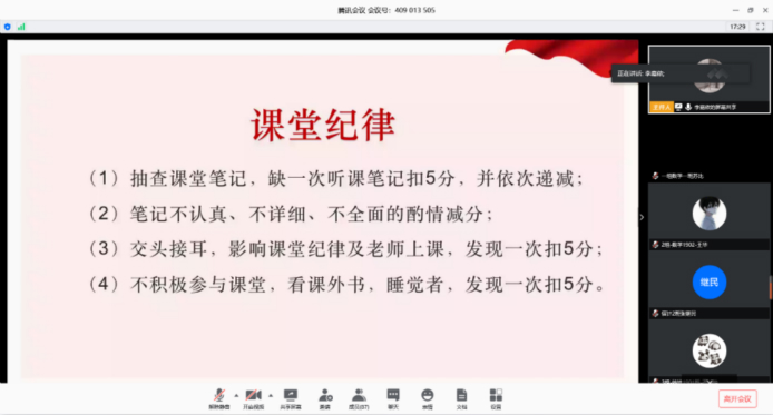 2020年4月11日下午,数学与统计学院举行了第35期入党积极分子培训班开班典礼,班主任柳映堂及第35期入党积极分子参加。