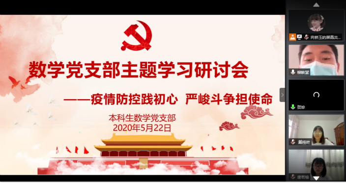 为深入学习贯彻习近平总书记关于统筹推进疫情防控和经济社会发展的重要讲话精神,动员广大党员充分发挥模范带头作用,数统学院本科生统计、信计、数学、研究生党支部分别于5月10日至22日线上开展“疫情防控践初心,严峻斗争担使命”主题党日活动。
