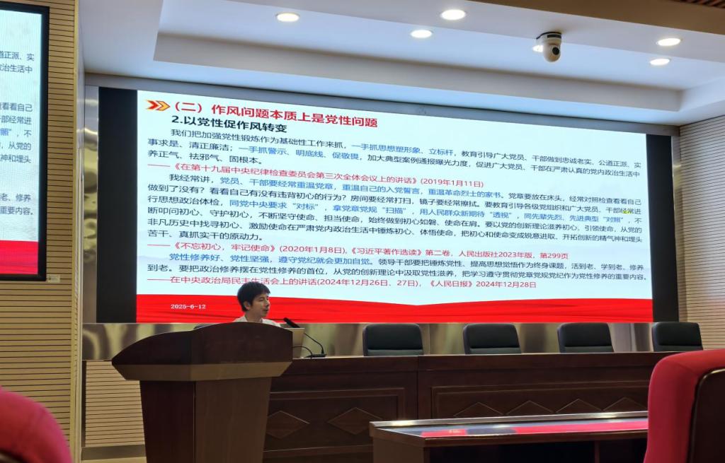 随后,郑忠辉以“作风建设永远在路上”为题为毕业党员上了一堂党课,强调了作风问题对于党员的重要性。他指出,作风是党员党性修养、政治品质、道德境界的具体体现,良好的作风是保持党的先进性和纯洁性的重要保障,也是赢得人民群众信任和支持的关键。对于即将走向工作岗位的毕业生党员来说,树立正确的作风观念,不仅关系到个人的成长发展,更关系到党和国家事业的兴衰成败。随后,郑忠辉围绕中央八项规定精神进行了详细解读,他强调,中央八项规定是改进作风的切入口和动员令,是长期有效的铁规矩、硬杠杠,每一名党员都必须严格遵守,自觉抵制各种不正之风。