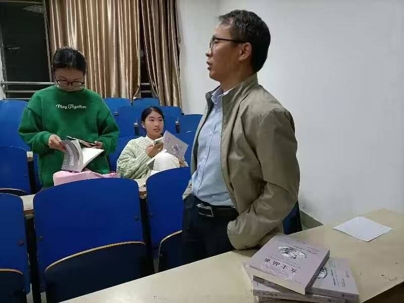 活动伊始,由朱恩文老师介绍此次活动的目的,希望同学们在此次读书分享会能够增进相互之间的了解,增进同学友谊,同时养成读书学习的习惯。然后,由朱恩文老师分享了自己近期读到的一段话,“年轻的时候,常常以为不读书不足以了解人生,直到后来才发现,如果不了解人生,是读不懂书的”,然后分享了读这段话时自己的感受,然后现场响起了掌声,现场的氛围也更活跃了。同学们从朱老师的分享中体会到了读书的意义。然后,同学们争先恐后的分享自己的读书体会。最后,由朱恩文主持此次活动结束,希望同学们在今后大学生活中能多读书、读好书,养成读书学习的习惯。