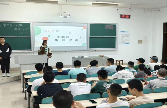第三个环节为班级破冰小游戏,第一个游戏为听歌识曲,在该游戏中,同学们一起听负责人手机中播放的音乐,先猜出歌名的同学能够获得奖品。过程中大家积极参与,有的同学甚至能够快速准确地猜出多首歌。最后以一首大家耳熟能详的歌曲以共同回答的方式,结束了这个游戏。