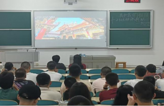 第二个环节为观看爱国主义微电影,同学们观祖国河山,知山水名秀,见前辈之奋斗,立坚韧不拔之志。大家都认真严肃的观看,用心体会其中道理,感受国家的伟大和历史的沧桑。