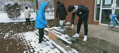2021年的第一场大雪给学生上课带来诸多不便和安全隐患,数学与统计学院积极组织学生干部在理科楼A区、B区及包围区的主干道路进行清理。