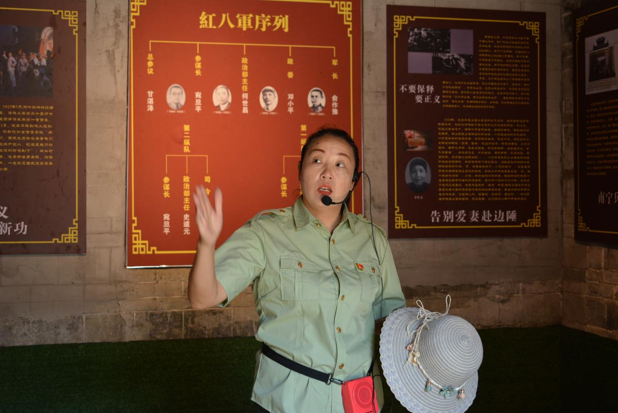 故事从宛旦平故里红色景区碑和竹青亭开始,碑代表着宛将军的担当,竹青亭则赞美着宛将军妻子的大爱和他们坚贞不渝的爱情。沿着文化长廊品读经典,感受文化熏陶,实践团来到了宛旦平将军居住的地方——宛氏宗祠,宗祠里铿锵有力的十六个字“东征北伐碧血丹心,龙州起义光照千秋”霸气概括了宛旦平将军的生平。在古树荫蔽送来的阵阵清凉下,李老师带领实践团了解了新宁的绿色文化,沿着江来到了烈士衣冠冢,聆听着178位烈士光辉的英雄故事。感受其中藏匿的宛将军全心全意为人民服务的精神,更加深刻领悟到了党的宗旨。