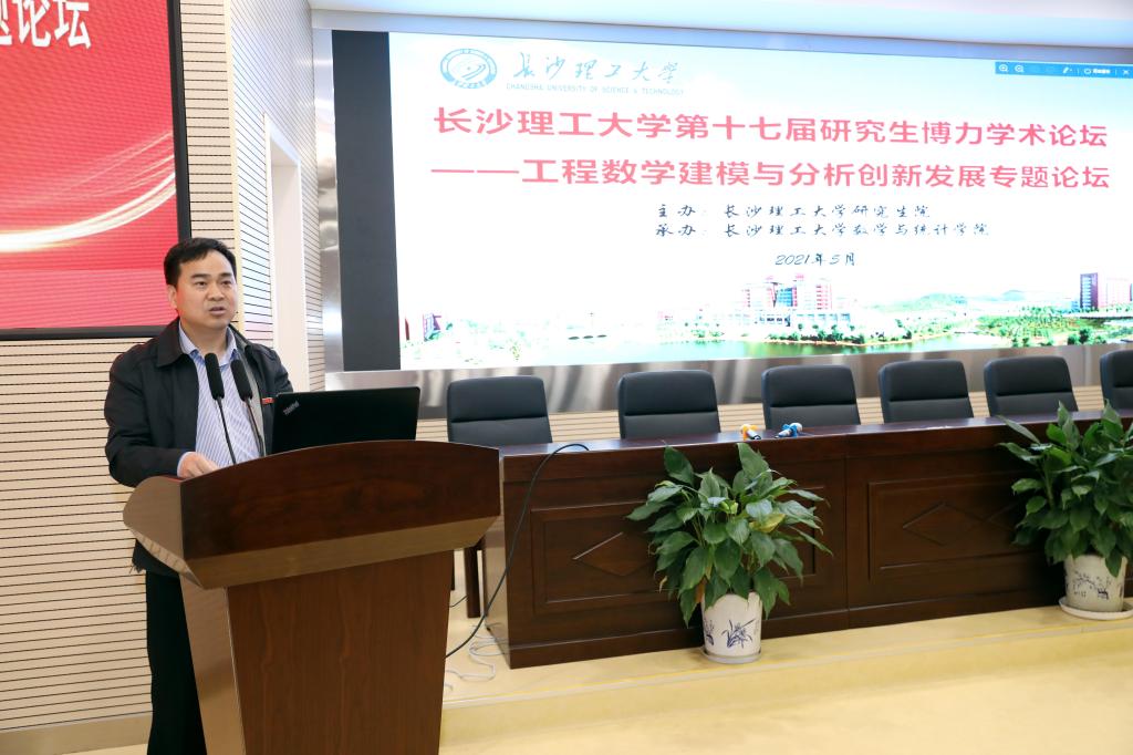 5月25日下午两点,william威廉中文官网第十七届研究生博力学术论坛——工程数学建模与分析创新发展专题论坛开幕式在理科楼A200成功举行。此次论坛由学校研究生院主办,数学与统计学院承办。湖南大学袁朝晖教授和李亚琼教授、中南大学潘克家教授和邓又军教授,校研究生院院长管德清、副院长兼研工部部长田上,数学与统计学院党委书记张宏伟、院长黄创霞等相关领导和专家出席了开幕式,开幕式由数统学院副院长李景主持,学院师生共计200余人参加了此次研究生学术论坛。