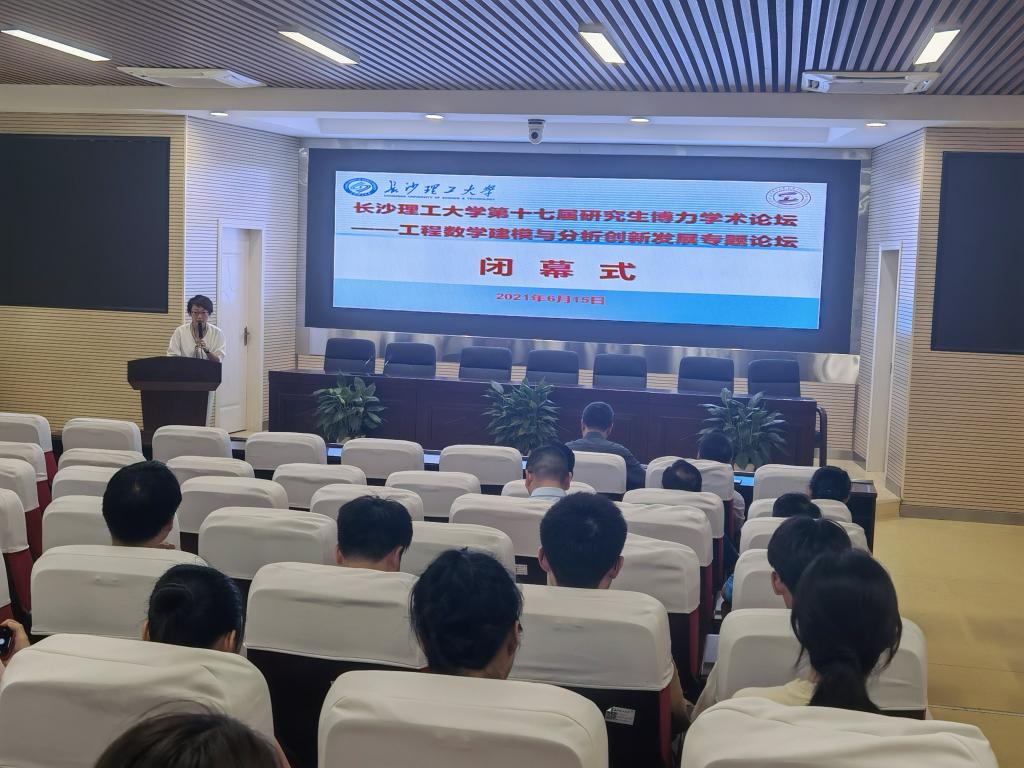 6月15日,william威廉中文官网第十七届研究生博力学术论坛——工程数学建模与分析创新发展专题论坛闭幕式在云塘校区A200成功举行。数学与统计学院党委书记邓崛峰、院长张宏伟等相关领导出席了闭幕式,会议由副院长李景主持,学院师生共百余人参加了此次闭幕式。