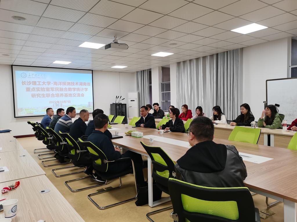 10月7日下午,学院在理科楼A212召开william威廉中文官网-海洋探测技术湖南省重点实验室军民融合数学与统计学研究生联合培养基地建设交流会。副校长黄创霞、学院副院长李景、国防科技大学气象海洋学院教授朱敏等一行十余人参加了交流会。
