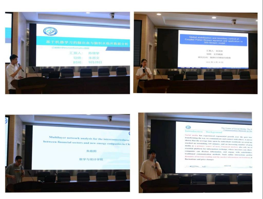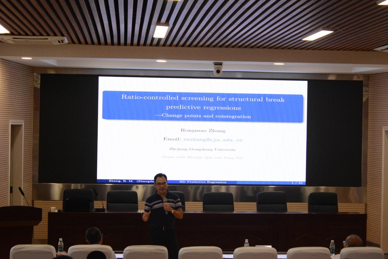 开幕式结束后,李海奇教授、张荣茂教授分别做了题为“Adaptive shrinkage estimation of high-dimensional moment condition models with smooth structural changes”“Ratio-controlled screening for structural break predictive regressions”的学术报告。以及9名研究生汇报了各自的研究成果。