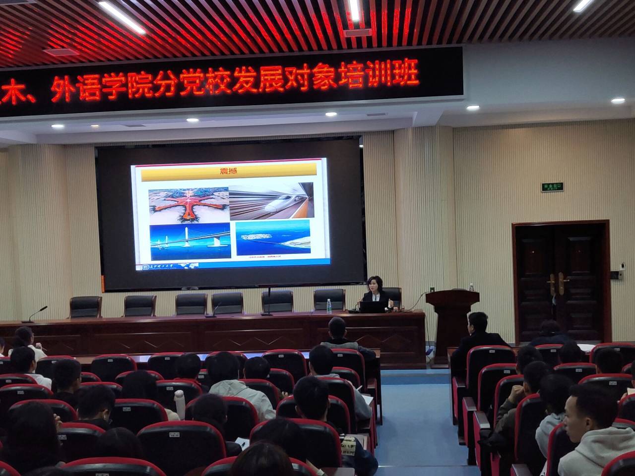 11月19日晚,土木、外语学院分党校组织第10期发展对象在工科二楼B302开展《习近平新时代中国特色社会主义思想》专题党课,由马克思主义学院董艾辉教授进行授课,培训班全体学员参加。