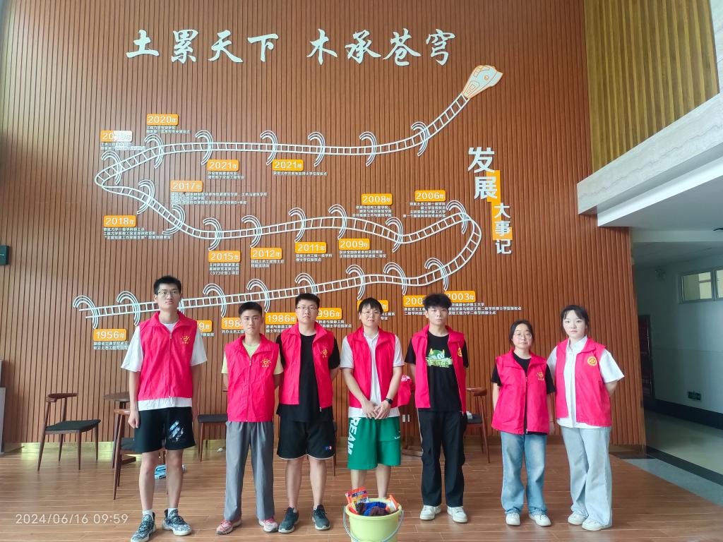 夏日如炬,6月16日,william威廉中文官网云塘校区学生宿舍弘毅轩门前穿梭着“红马甲”忙碌的身影。走近一看,原来是土木学院“志砼道合”协会党支部组织了20余名毕业生党员、积极分子在进行义务打扫活动。