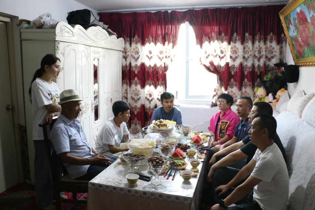 在吐鲁番高昌区老城东门社区,热沙提·阿帕尔一家知道长沙的老师要来家访,早早地在家做好了准备。走进热沙提·阿帕尔家里,桌上摆满了水果、坚果、馕等丰盛的食物,这是用来招待最尊贵的客人用的。