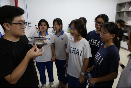 在老师和志愿者的引导和讲解下下,怡海中学的师生们首先参观了科创中心的3D打印机、结构设计训练室、先进成图训练室和电气学院的机器人实验室等地,实地感悟了william在科学研究、技术创新、学科竞赛等方面的成果,让中学生们对科技创新有了更深刻的认识,激发了他们热爱科学、探索未知的兴趣。随后,师生们来到“三全育人”教育基地。师生们在讲解员的带领下参观了教育基地,同学们积极参与互动体验,感受大学校园文化的魅力。