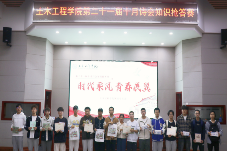 10月21日,土木学院于工二B301举办第二十一届十月诗会之“青春践行二十大”知识抢答赛,来自各年级的96名同学参加本次比赛。