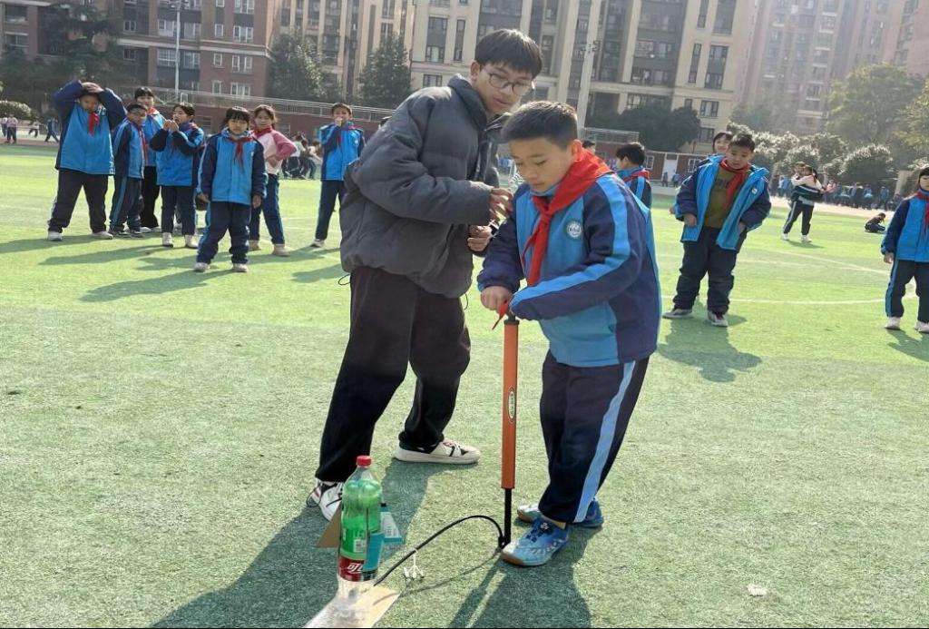12月18日,学院工程力学专业学生党员志愿者在力学系主任彭旭龙的带领下走进龙湾小学,为小朋友们开设了一场别开生面的科普小课堂活动——发射水火箭,为他们带来了一次难忘的科学探索之旅。