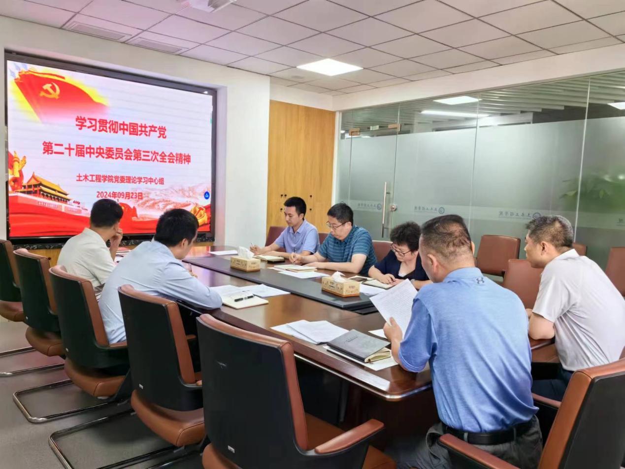 9月23日,土木学院党委理论学习中心组在工二A401会议室召开深入学习贯彻党的二十届三中全会精神专题研讨会。班子成员参加,学院党委书记江河主持会议。