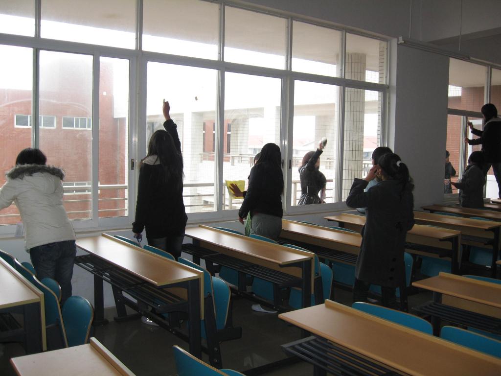 绿化带边堆积已久的建筑沙土,再沉再重也打消不了志愿者们向雷锋学习的高昂热情;久未擦拭的走廊扶手、教室窗户在我们志愿者的劳动下露出了清澈的明眸;被白色垃圾污染的绿化带,终于绽放盎然绿意。看到这些被自己精心打扫的教学楼变得如此舒适清新,我们的青年志愿者们一个个笑开了花。