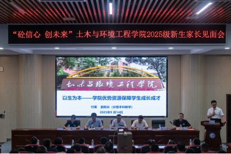 9月14日,学院于工二B302召开“砼信心 创未来”2025级新生家长线下见面会,学院官方微信视频号同步直播。院党委书记肖寒、副院长(主持工作)曾铃、院党委副书记吴振华、副院长付果,辅导员及家长代表现场200余人参加,线上累计4800余人参会。会议由院党委副书记吴振华主持。