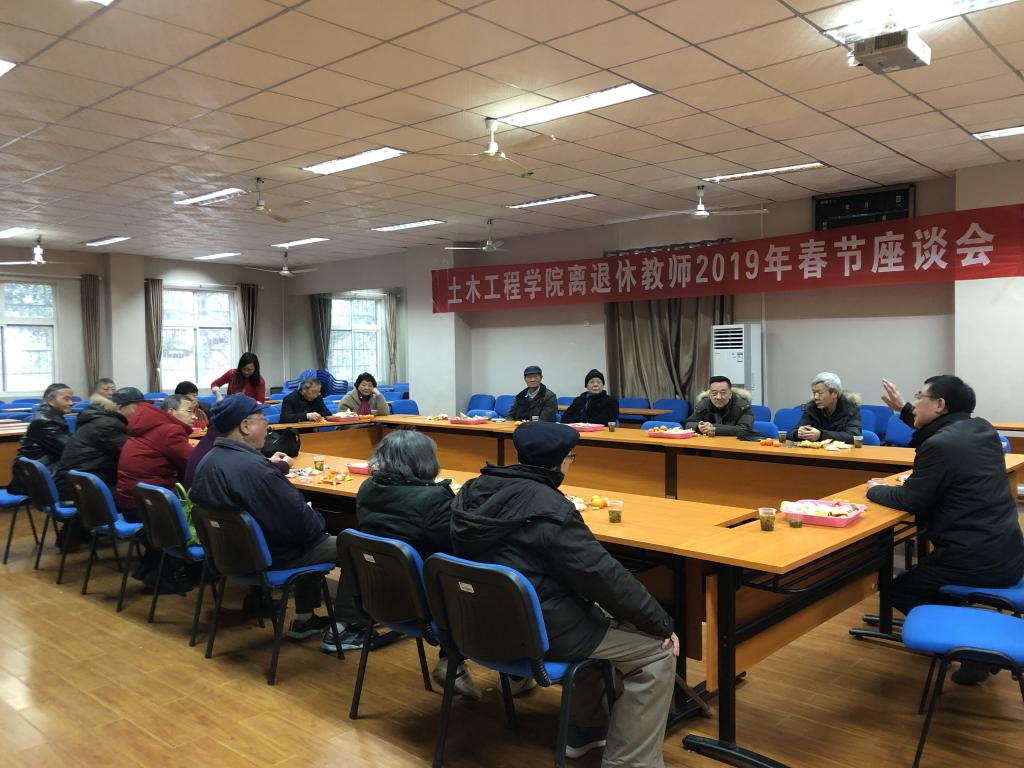 1月23日上午,土木学院在金盆岭校区2号教学楼二楼会议室举行离退休教师2019年春节座谈会,看望慰问离退休老同志,院长李传习出席。座谈会由院党委副书记、分工会主席王煜坤主持。