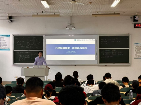 11月7日下午,土木工程学院在综合教学楼A205开展了主题为“力学发展简史:决定论与混沌”的本科生通识教育讲座。主讲人为力学系赖安迪,100余名力学系本科生参加了讲座。