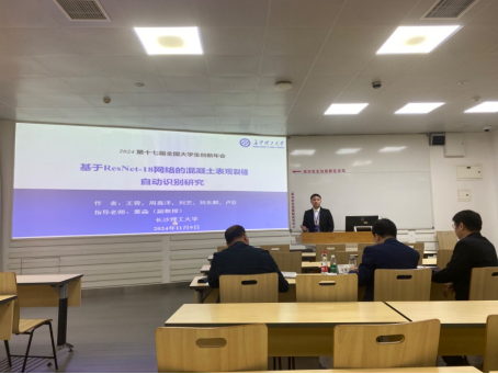 2024年11月8日-10日,由教育部高等教育司指导的第十七届全国大学生创新年会在四川大学召开。2021级本科生王蓉、周鑫洋、刘艺、刘东麒和卢羽完成的全国大学生创新训练项目成果成功入选年会交流,并由团队成员代表作了题为“基于ResNet-18网络的混凝土表观裂缝自动检测研究”的学术论文报告。闭幕式上,团队指导老师粟淼副教授受邀担任“最佳创业项目”颁奖嘉宾。