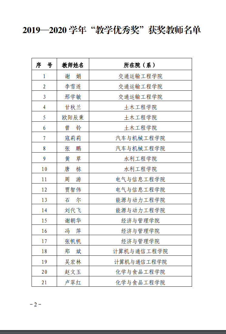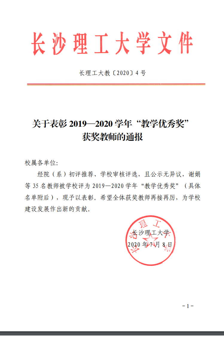 关于表彰2019-2020学年教学优秀奖获奖教师的通报