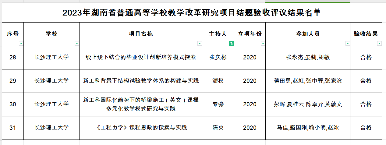 根据《湖南省普通高等学校教学改革研究项目管理办法》(湘教发〔2021〕23号)和《关于开展2023年湖南省普通高等学校教学改革研究项目立项和结题工作的通知》(湘教通〔2023〕234号)的要求,经教育厅审定,土木工程学院4项省级教改项目通过结题验收。