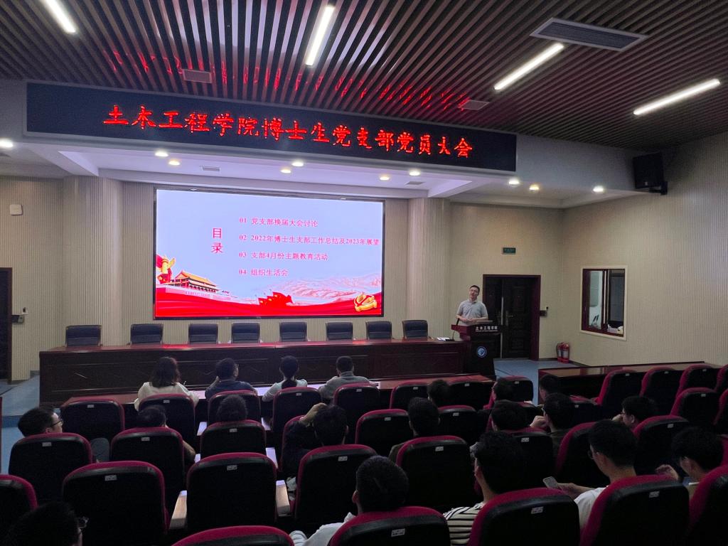 4月14日,土木工程学院博士生党支部党员大会在工科二号楼B302召开。土木工程学院党委副书记黄阿明出席会议,会议由研究生辅导员汪国栋主持。博士生党支部各支部委员以及党员博士研究生参加会议。其中,会议应到党员72人,实到线下40名、线上30名,符合规定人数。