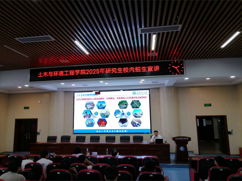 2025年6月25日上午,土木与环境工程学院2025年研究生校内招生宣讲会在云塘校区工科二号楼B302报告厅举行。学院副院长蒋友宝教授担任主讲人,力学系主任彭旭龙教授、岩隧系主任黄阜教授、智建系张白老师及科研办禹丽娥老师参加了本次宣讲会,共同为学子答疑解惑。