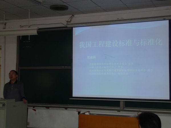 上午九点,梁建国教授在金盆岭校区1教学楼A-201为即将毕业的2013届毕业生举办了《我国工程建设标准与标准化》专题讲座。建工系包括王中强主任、卜乐奇书记在内的10名专业教师,以及建筑工程2013届毕业生听取了报告。