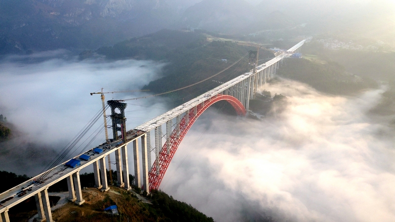 大小井特大桥,钢管混凝土拱桥,450m,建造时间:2016年,我院主要工作:施工监控