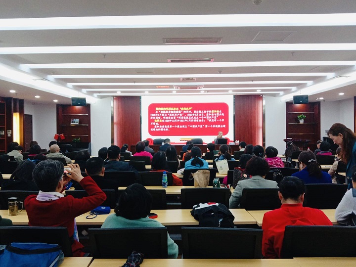 张可荣教授“觉醒湖湘动地诗”为题,“中国共产党诞生的历史必然性”、“百年前湖南先进分子的创党活动”、“党成立初期湖南创造诸多党史第一”三个方面,宣讲了湖南先进分子建党事迹和贡献,用详实的文献资料和新颖的文化视角讲授了近现代以来湖湘大地人才辈出,湖湘文化大放异彩,湖湘儿女勇立时代潮头,为实现民族觉醒、完成建党伟业谱写一曲曲撼动山岳的壮丽诗篇。精彩的内容和朴实幽默的语言,为与会职工带来了一场生动的党史学习教育。