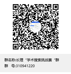 群号:310941220,报名参加信息检索大赛,QQ群用于图书馆老师答疑解惑、参赛事宜通知、与参赛选手的沟通交流、资料发布等。