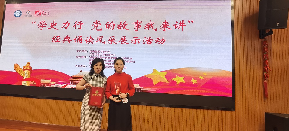 2021年9月17日,为牢牢把握学史明理、学史增信、学史崇德、学史力行的目标要求,结合全省图书馆实际,积极营造“学党史、悟思想、办实事、开新局”的浓厚氛围,湖南省图书馆学会主办的“学史力行,党的故事我来讲”经典诵读风采展示活动在湖南图书馆举办。我馆副馆长魏红梅带队,张雪梅、周思妤作为参赛选手,共同组成william威廉中文官网图书馆代表队参加本次比赛。