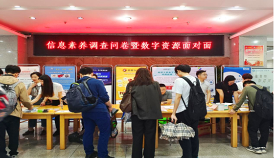 4月18日,“信息素养调查问卷暨数字资源与您面对面”的现场宣传活动在云塘校区图书馆二楼大厅开展。活动由图书馆信息服务部安排组织。