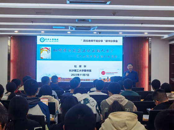 11月8日晚,图书馆在云影文化传播中心(云塘馆B-102)举办以“如何设计充实且快乐的人生——《人生设计课》”为主题阅读分享会。此次分享会邀请图书馆馆长杜荣华教授担任主讲人,图书馆学生助理副馆长秦铭莲担任主持人。现场80余名师生参加本次读书分享会。